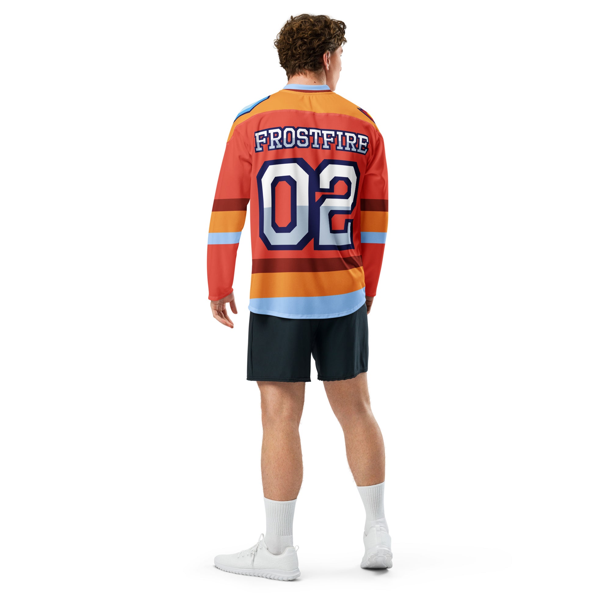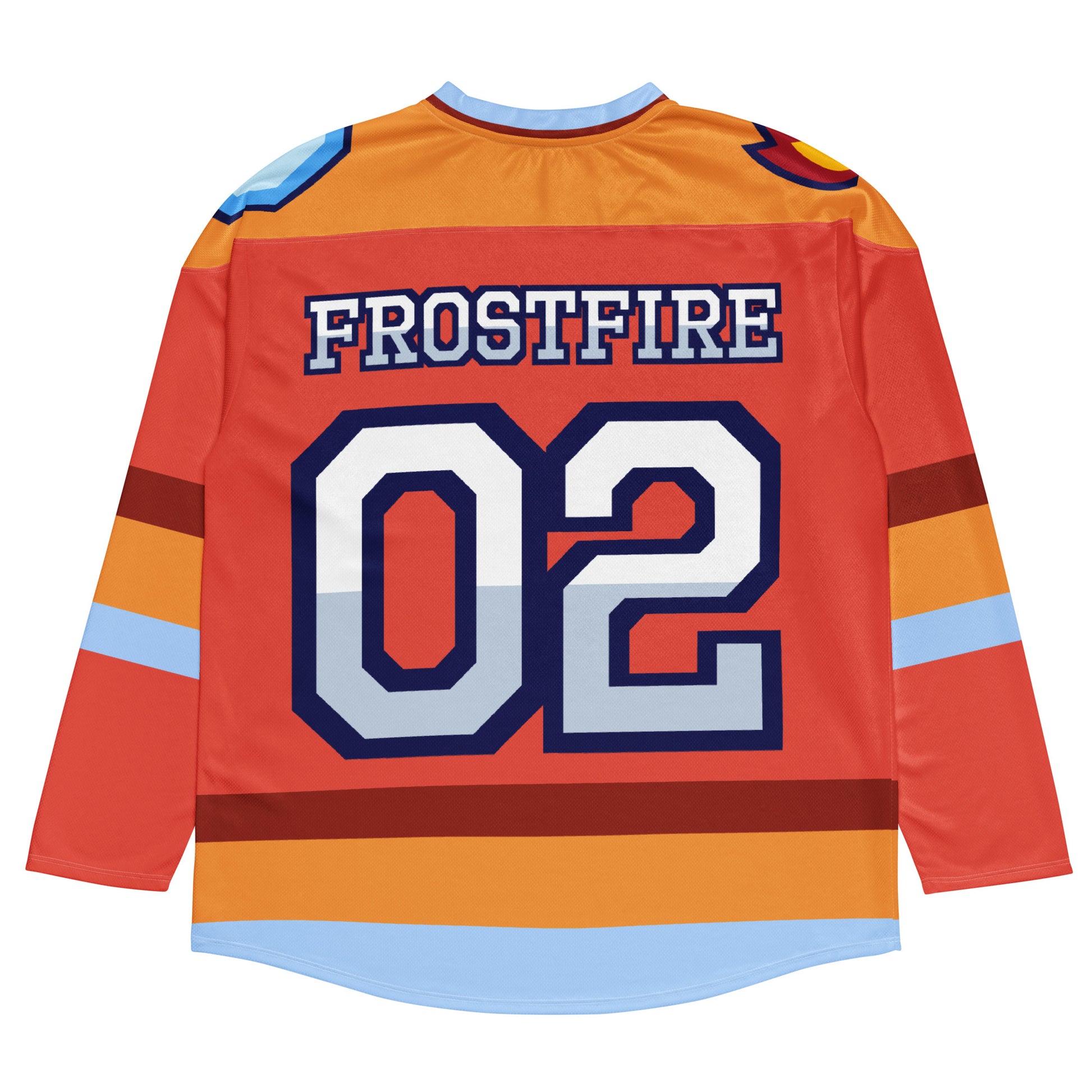 FrostFire is the most talked about rookie team this season. With a Pro League Champion and two of the best rookies, they may go all the way to the Championship! This Unisex FrostFire Home Jersey features an alternate logo and details of each striker on this young, upstart squad.
